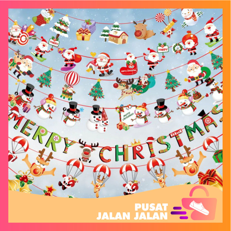PJJ 6023 Banner Christmas Banner Desain Natal Tirai Natal Banner Flag Natal Tirai Warna Warni Dekorasi Natal