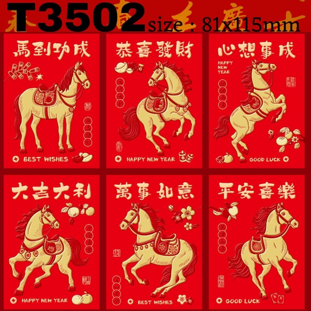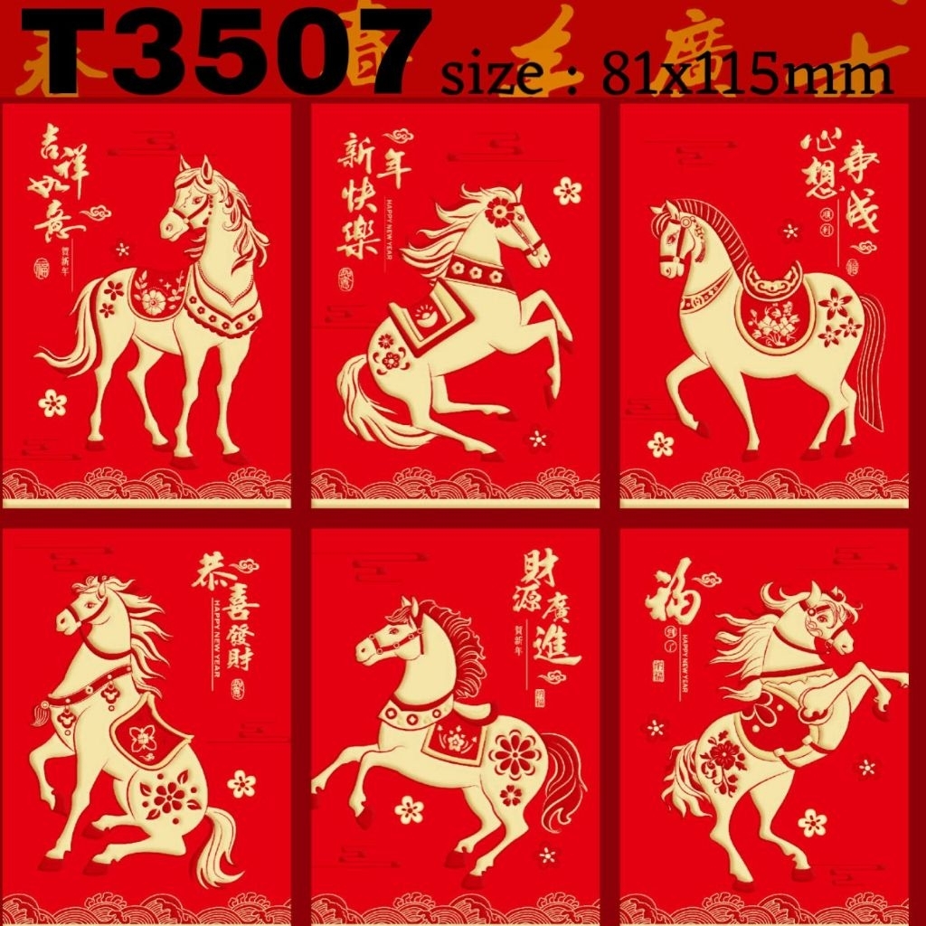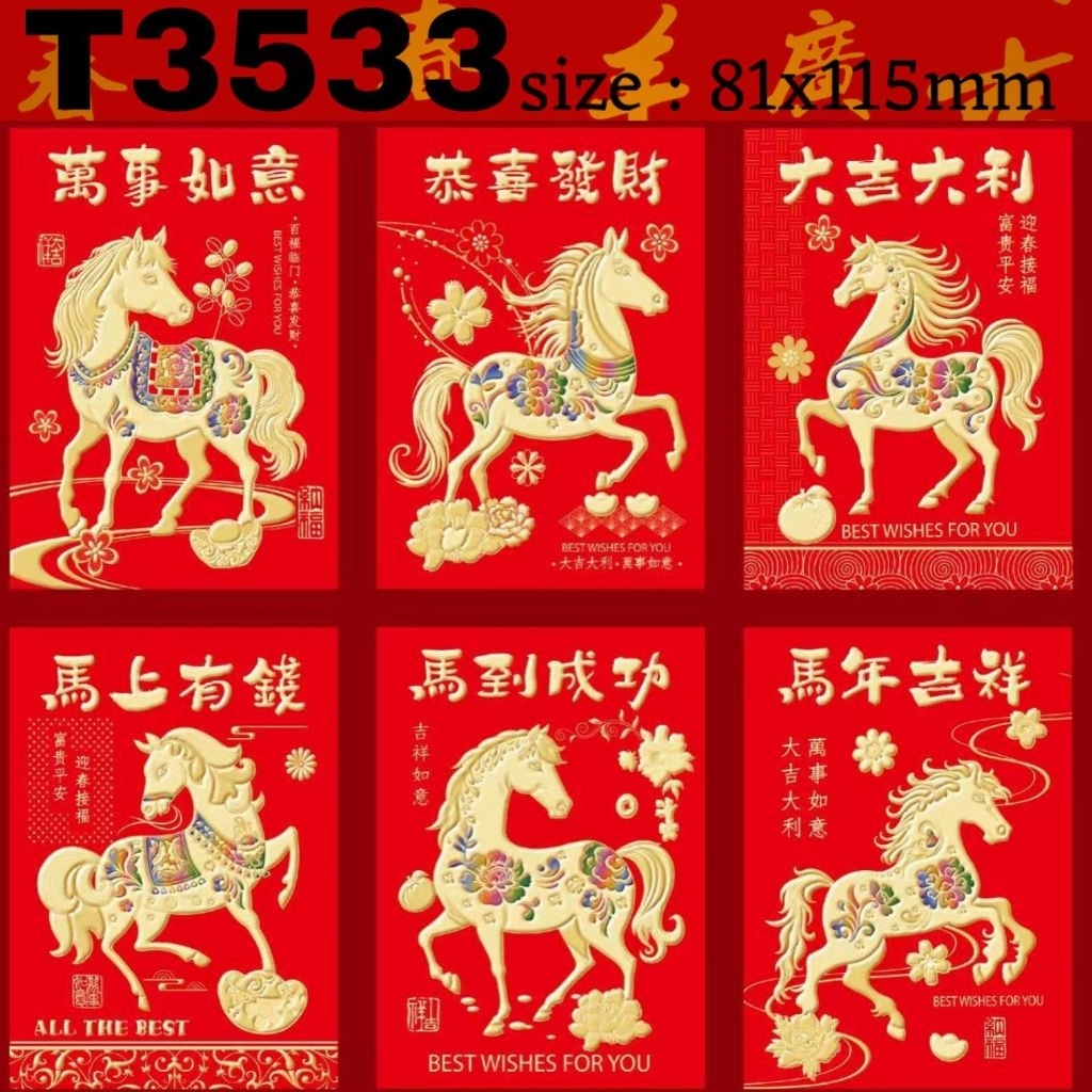 Angpau kuningan mengkilap tahun 2026 shio kuda ukuran sedang tebal amplop hongbao