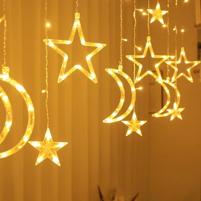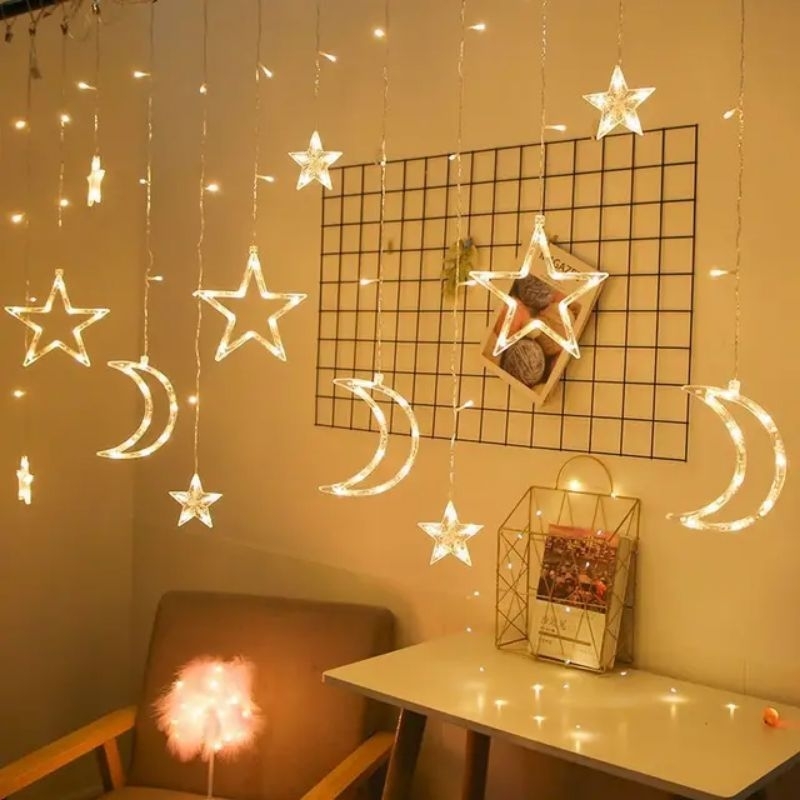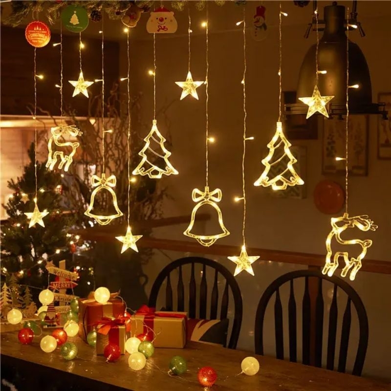 3 5M Tirai Lampu Natal Model Rusa Christmas Tree Christmas Bells Bintang Warna Warm Light Untuk Dekorasi Natal