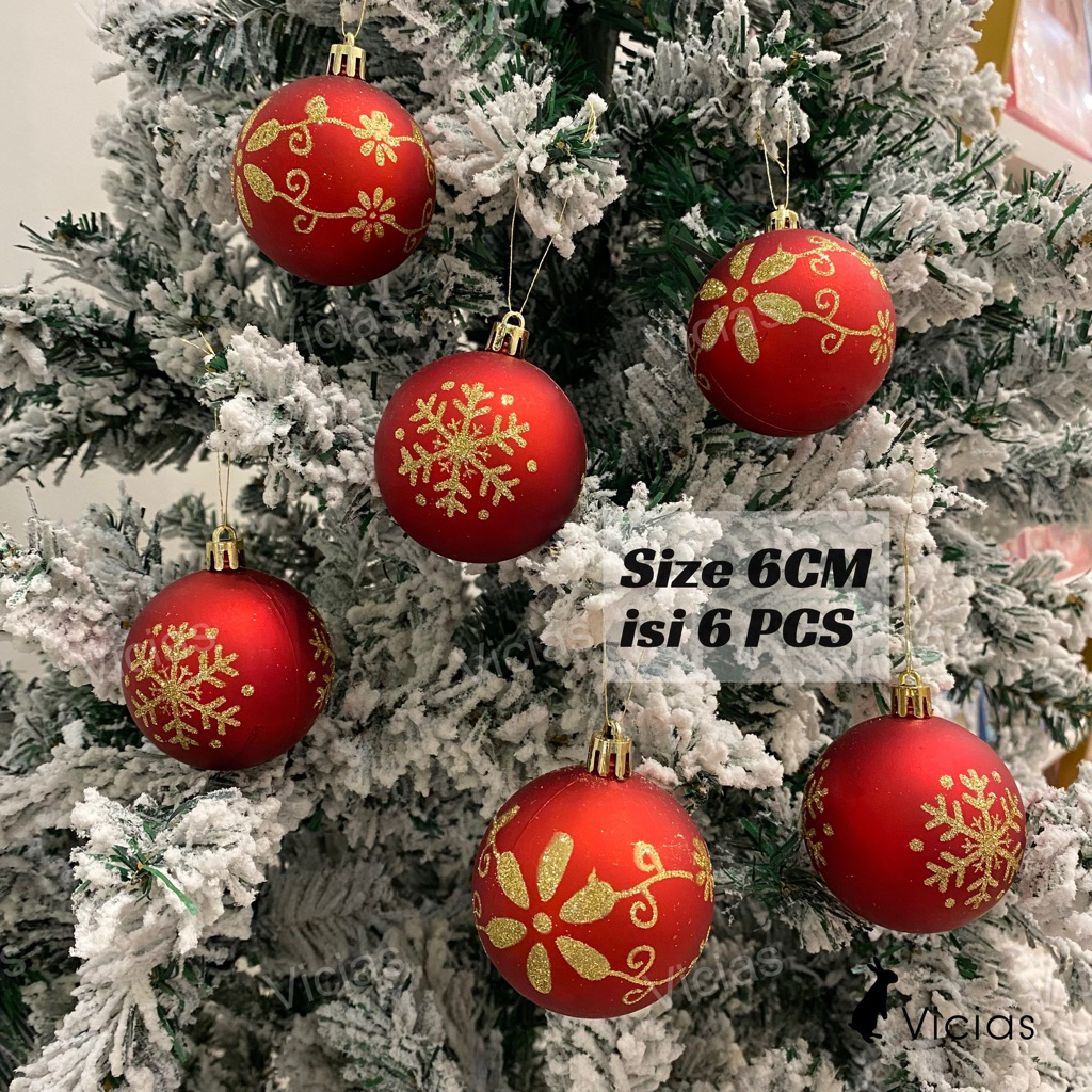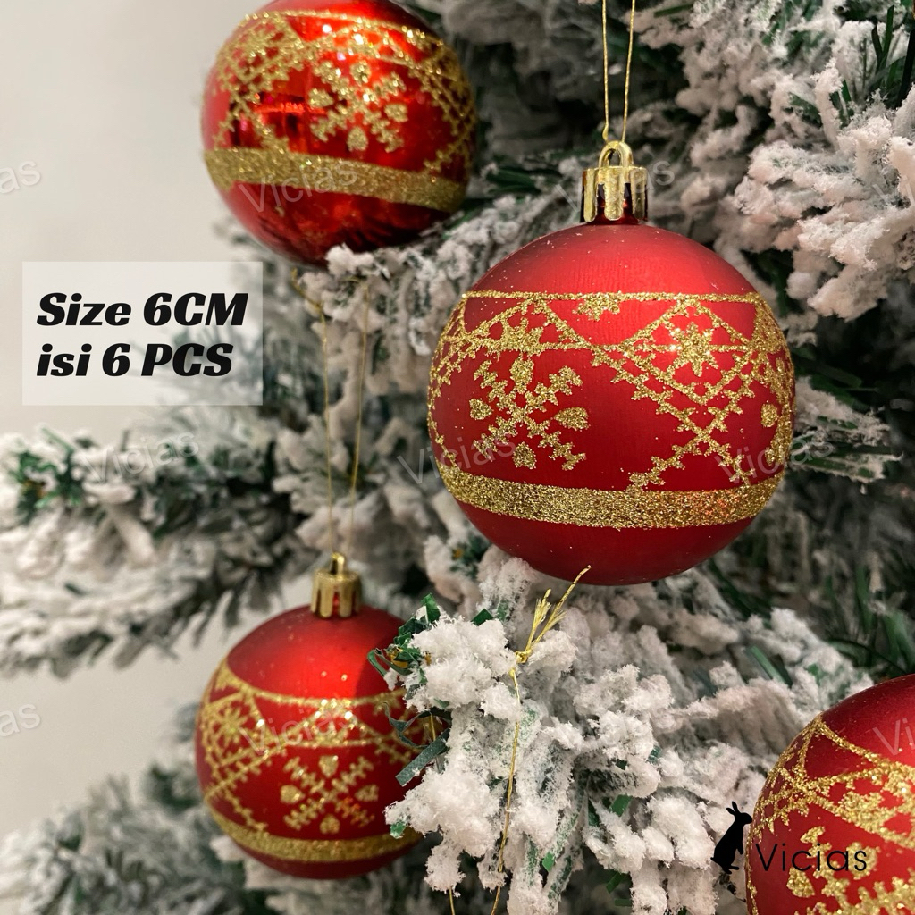Bola Natal 6CM 6pcs Motif Painting Premium Ornamen Hiasan Pohon Natal 2025 Elegant Mewah