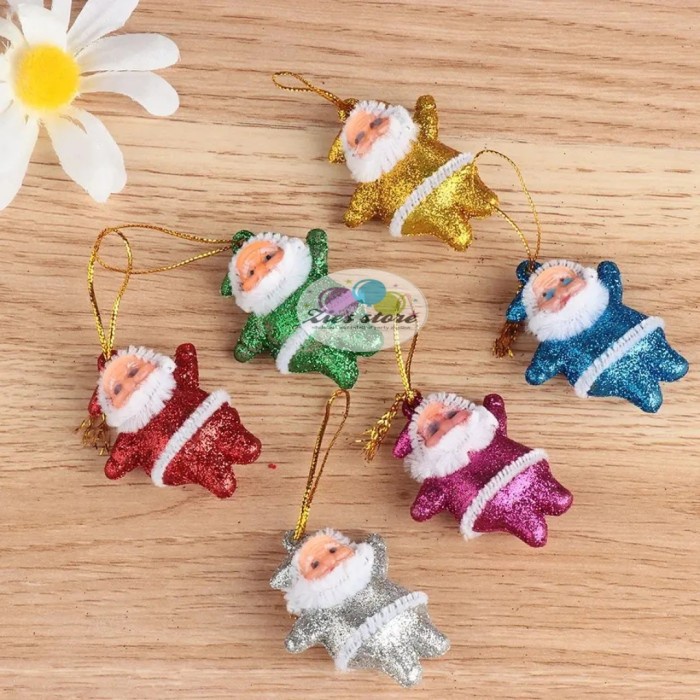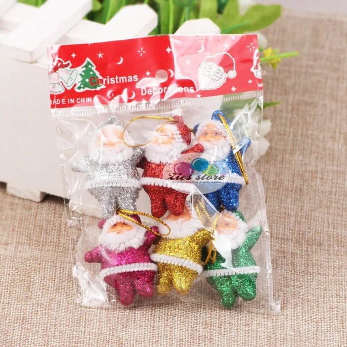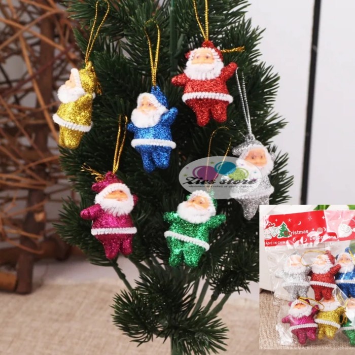 OS10 6pcs hiasan gantungan dekorasi pohon natal santa glitter mix 5cm