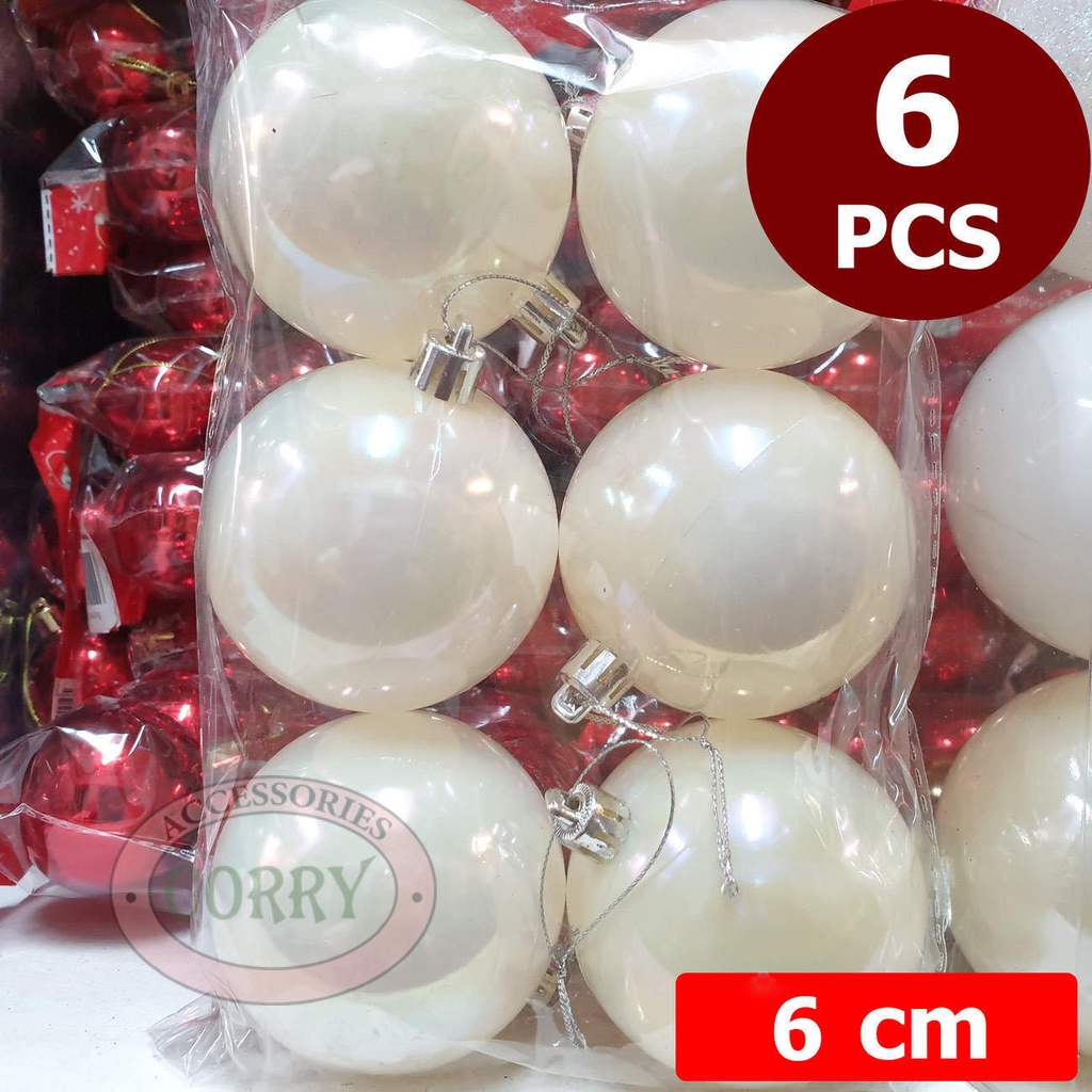Bola Gantungan Pohon Natal Putih 6 Cm Gading Mutiara Isi 6 Christmas Tree Dekorasi