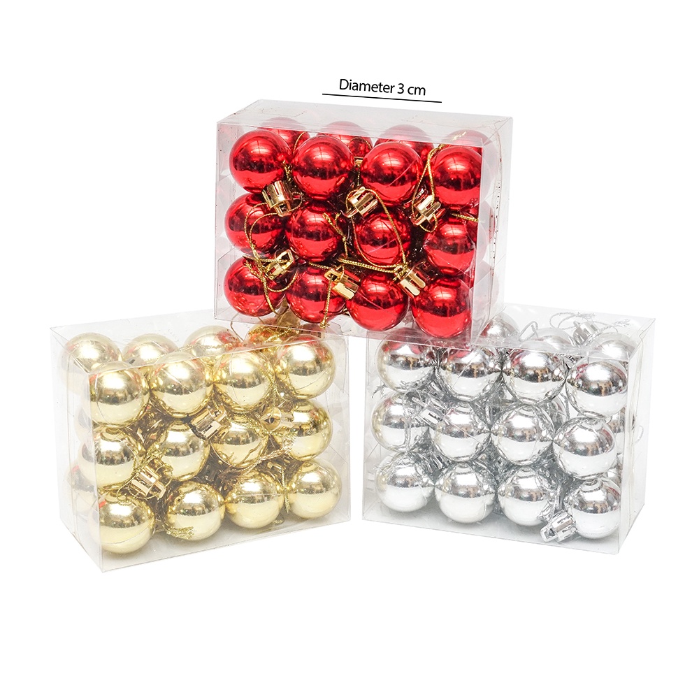 Hiasan Bola Natal Polos 3cm isi 24 Aksesoris Gantungan Dekorasi Pohon Natal Ornament Natal