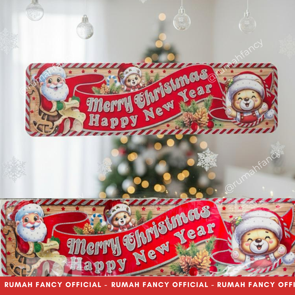 Banner Panjang Natal Merry Christmas 3D Timbul + Glitter Tempelan Pintu Kaca Dekorasi XMAS Murah