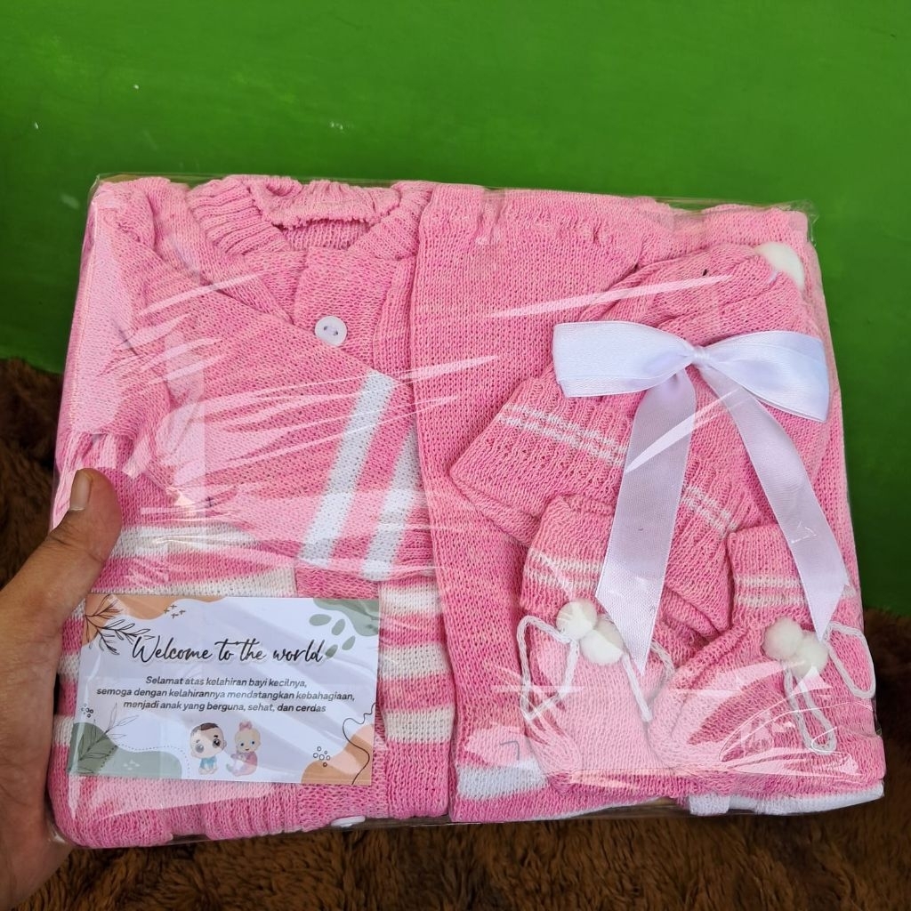 parcel bayi baru lahir aja isi 4 IN 1 BAJU HANGAT CELANA TOPI SARUNG KAKI RAJUT