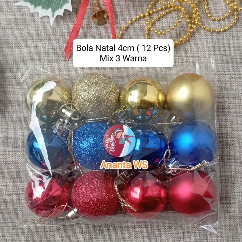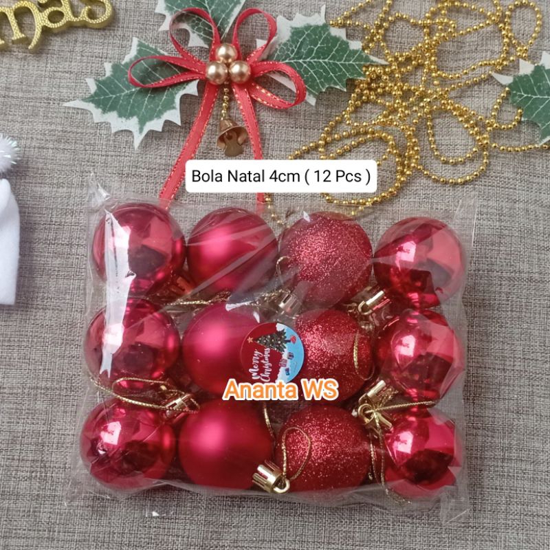 Bola Natal 4Cm Hiasan Pohon Natal Isi 12 pcs