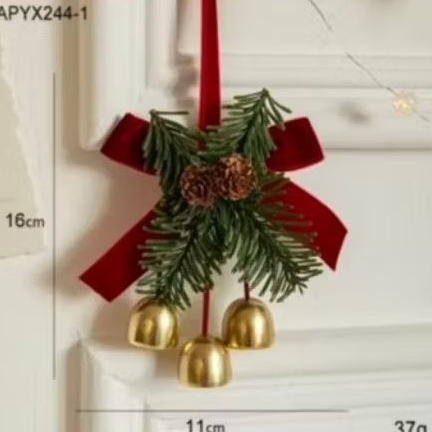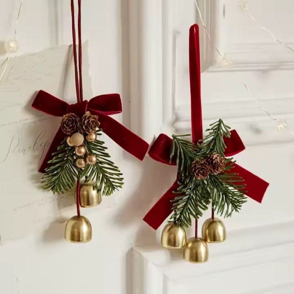 Christmas Bell 3 Lonceng Hiasan Natal Gantungan Pohon Natal dengan Pita Beludru Elegan Dekorasi Natal Minimalis