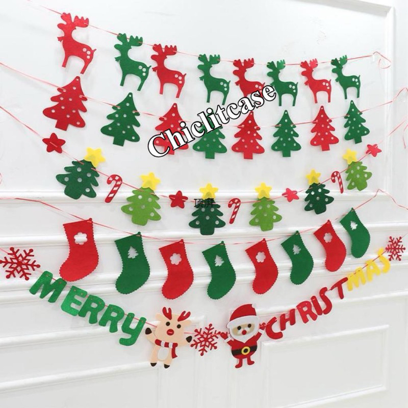 Banner kain flanel natal christmas banner rusa socks pohon natal garland