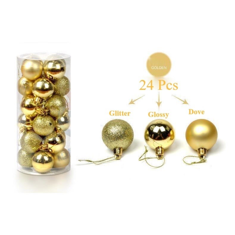 24pcs Bola Natal 4cm 3cm buah paket Hiasan Dekorasi Pohon Natal Rias Murah Cantik Merry Christmas Tree Hampers Garland K