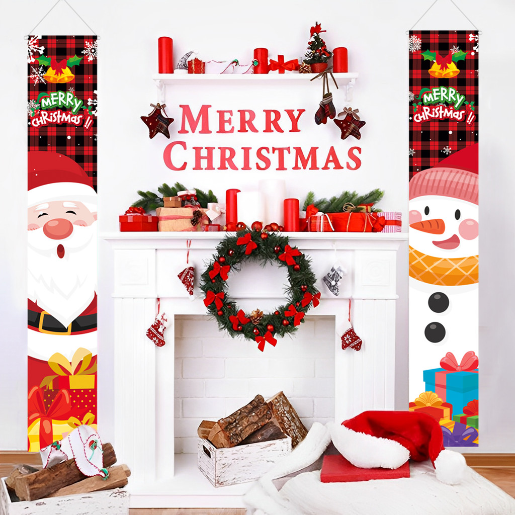 3pcs set Gantungan Banner Dekorasi Depan Pintu Natal Kain Motif Natal Christmas Memajang Kebawah Polyester