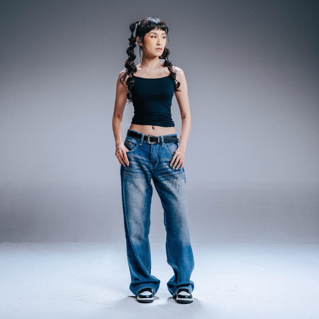 Celana Jeans wide leg gombrong Wisker Blue Think