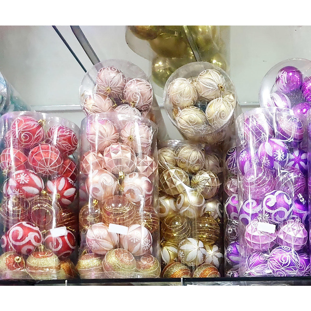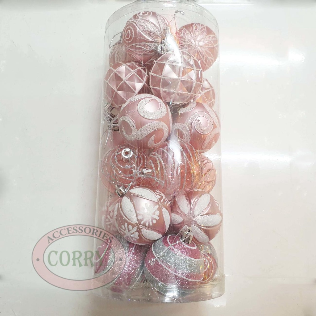 Hiasan Gantung Bola Pohon Natal 6 Cm Isi 24 Pcs Rose kuningan mengkilap Merah Ungu