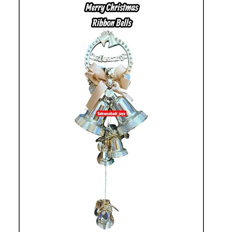 HIASAN GANTUNG POHON NATAL MERRY CHRISTMAS RIBBON BELLS HIASAN GANTUNGAN PINTU LONCENG MERRY CHRISTMAS Dekorasi Loncen