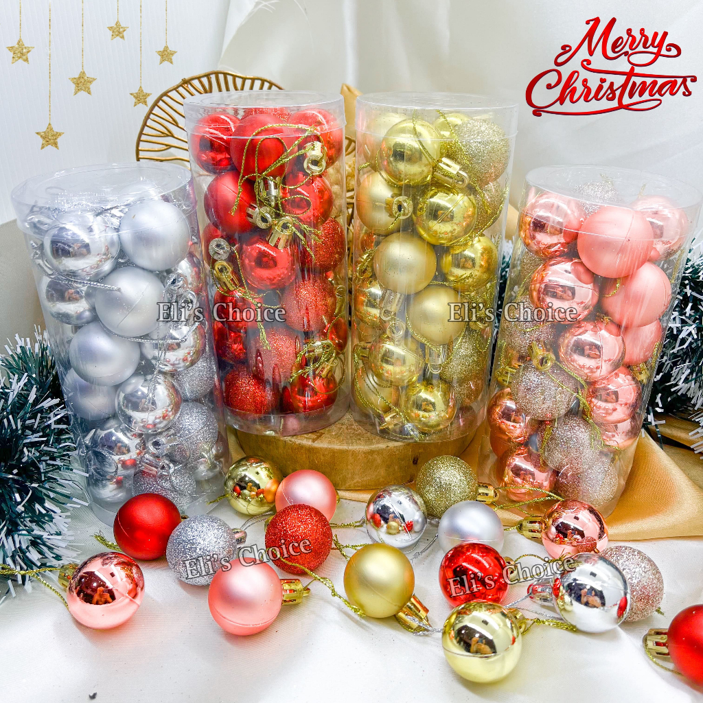 GROSIR Bola Natal Murah STOCK Gantungan Bola Pohon Natal Isi 6 12 24 Glossy Glitter Doff