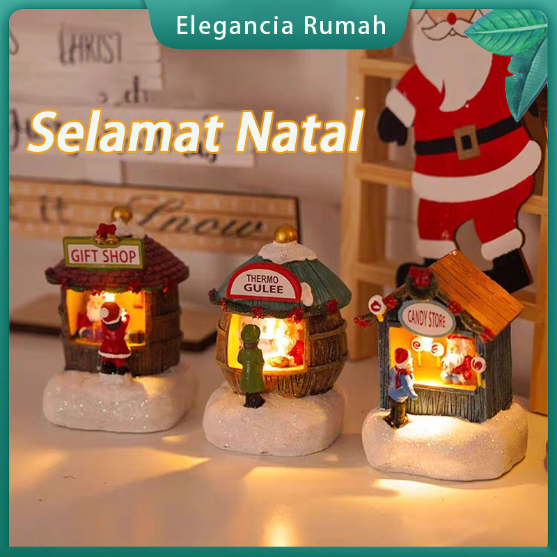 Xmas Resin House Ornamen Dekorasi Natal Hiasan Dekorasi Natal LED Rumah House Ornamen Christmas Miniatur Aksesoris Chris