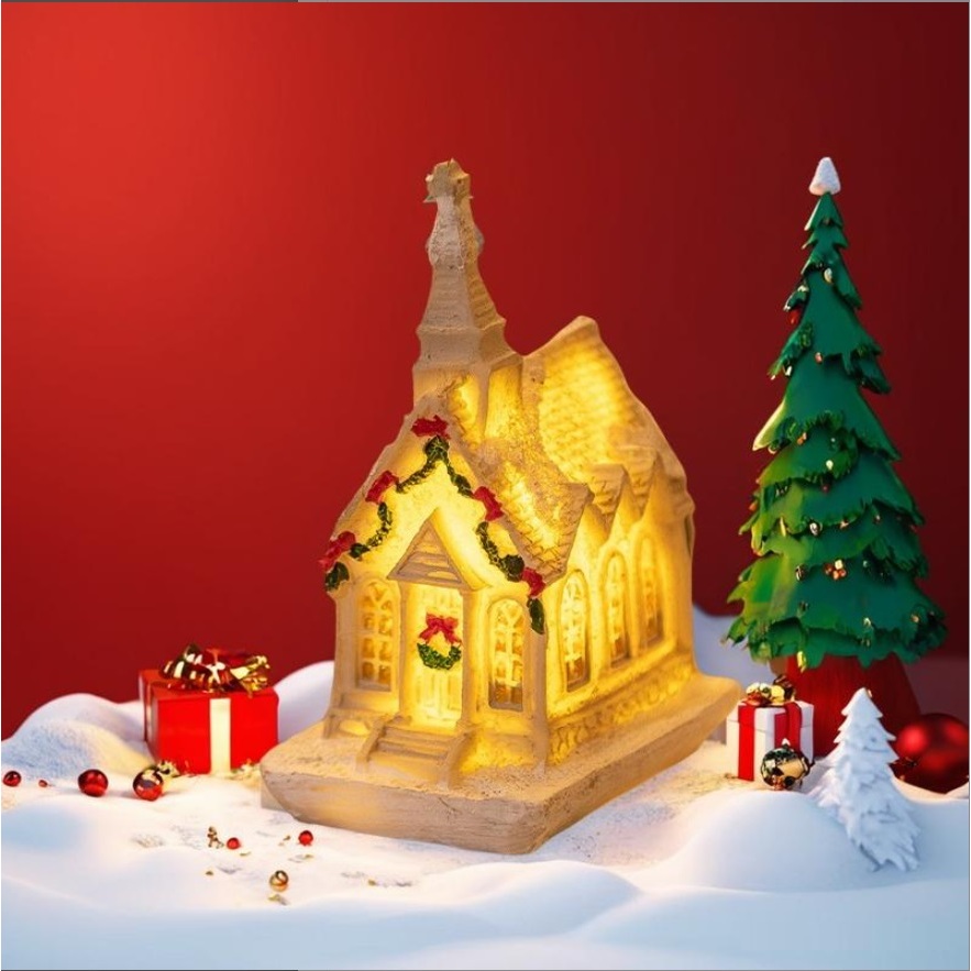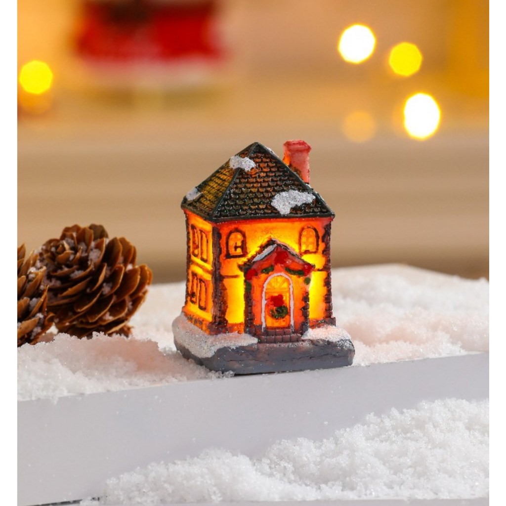 Rumah Natal LED Miniatur Aksesoris Christmas Xmas Resin House Ornamen Dekorasi Natal