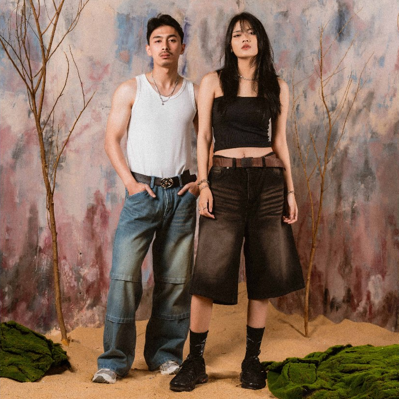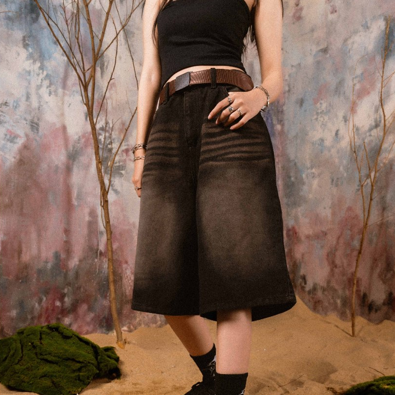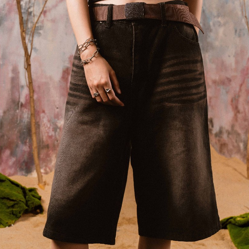 Celana Jorts Pants Black Retro Ethereal Series Celana Pendek Unisex
