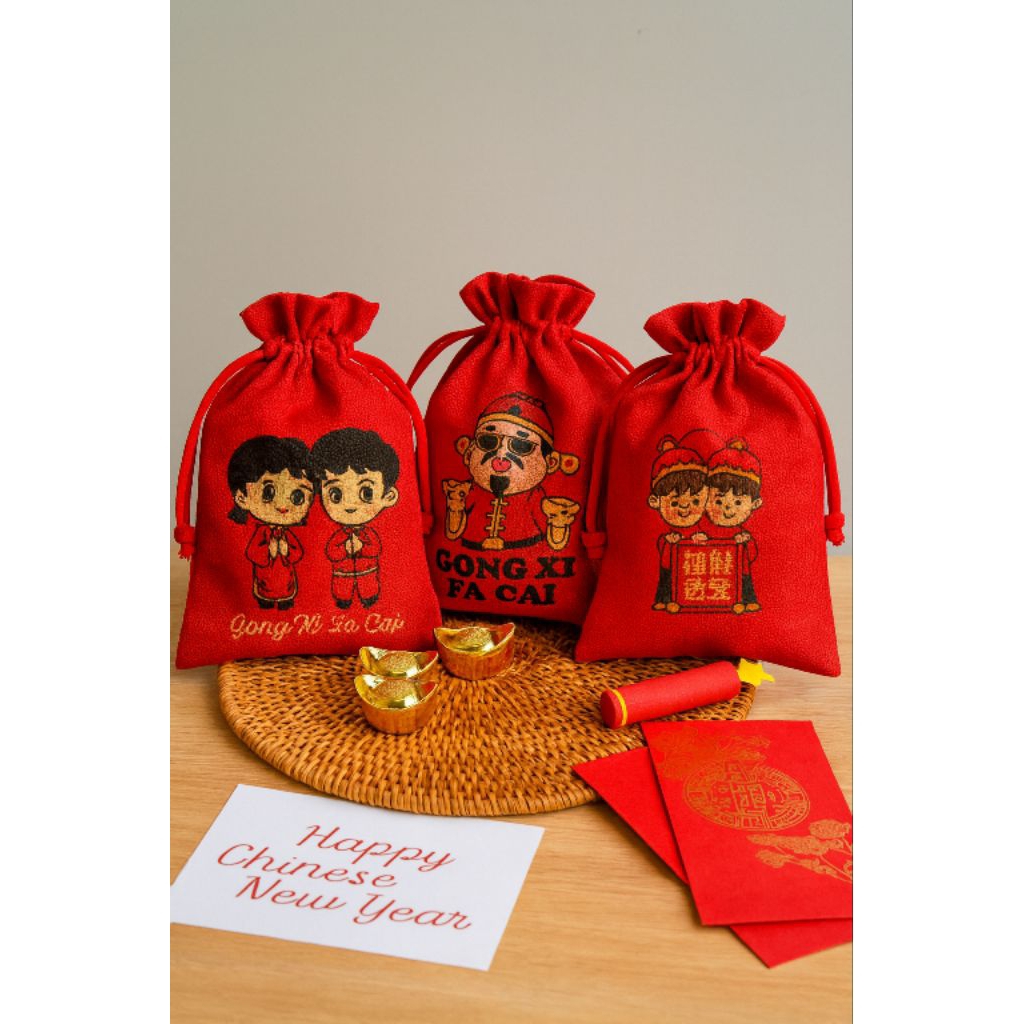 Amplop Angpao Imlek Serut Kain Premium Warna Merah 10 pcs