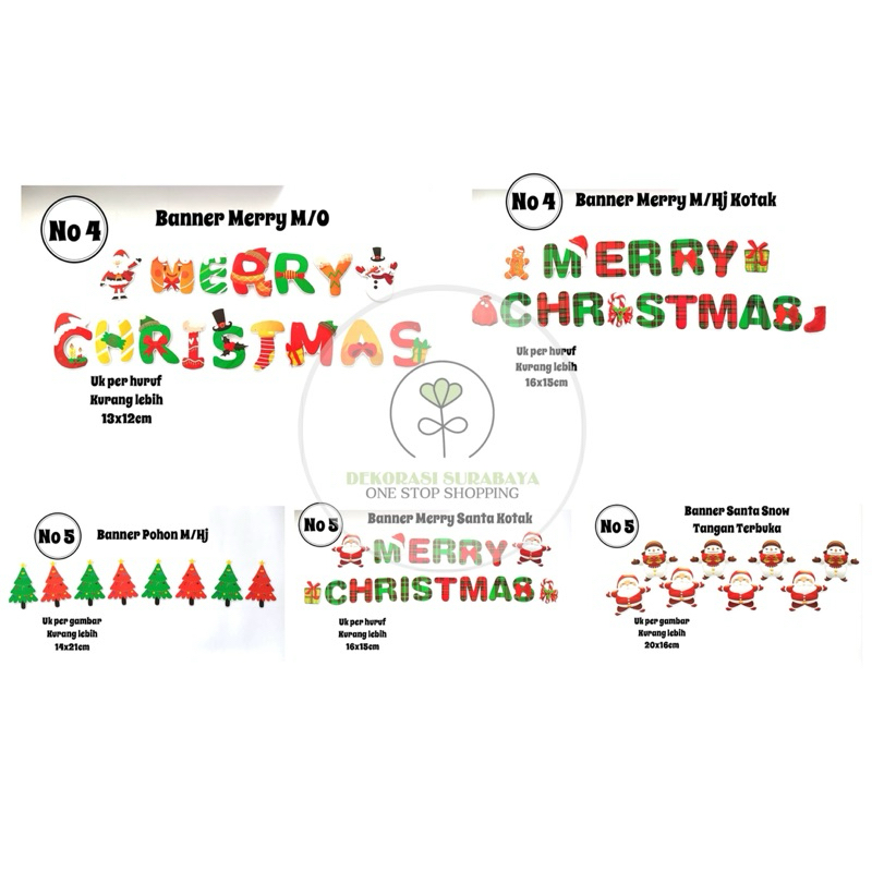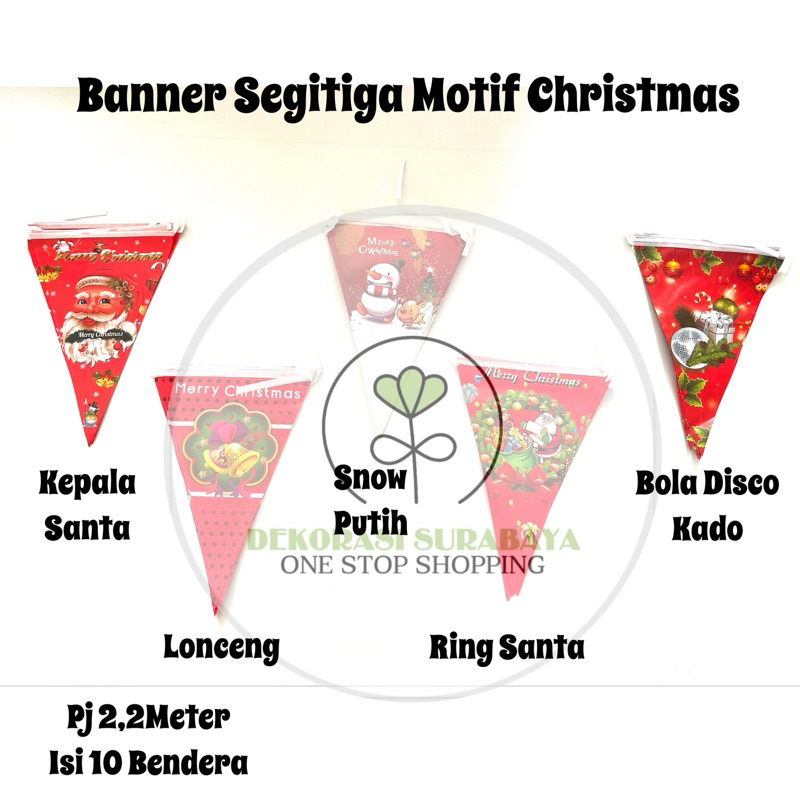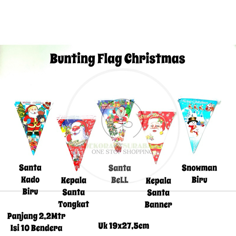 Dekorasi Natal Bunting Flag Banner segitiga Banner Motif Santa merry christmas