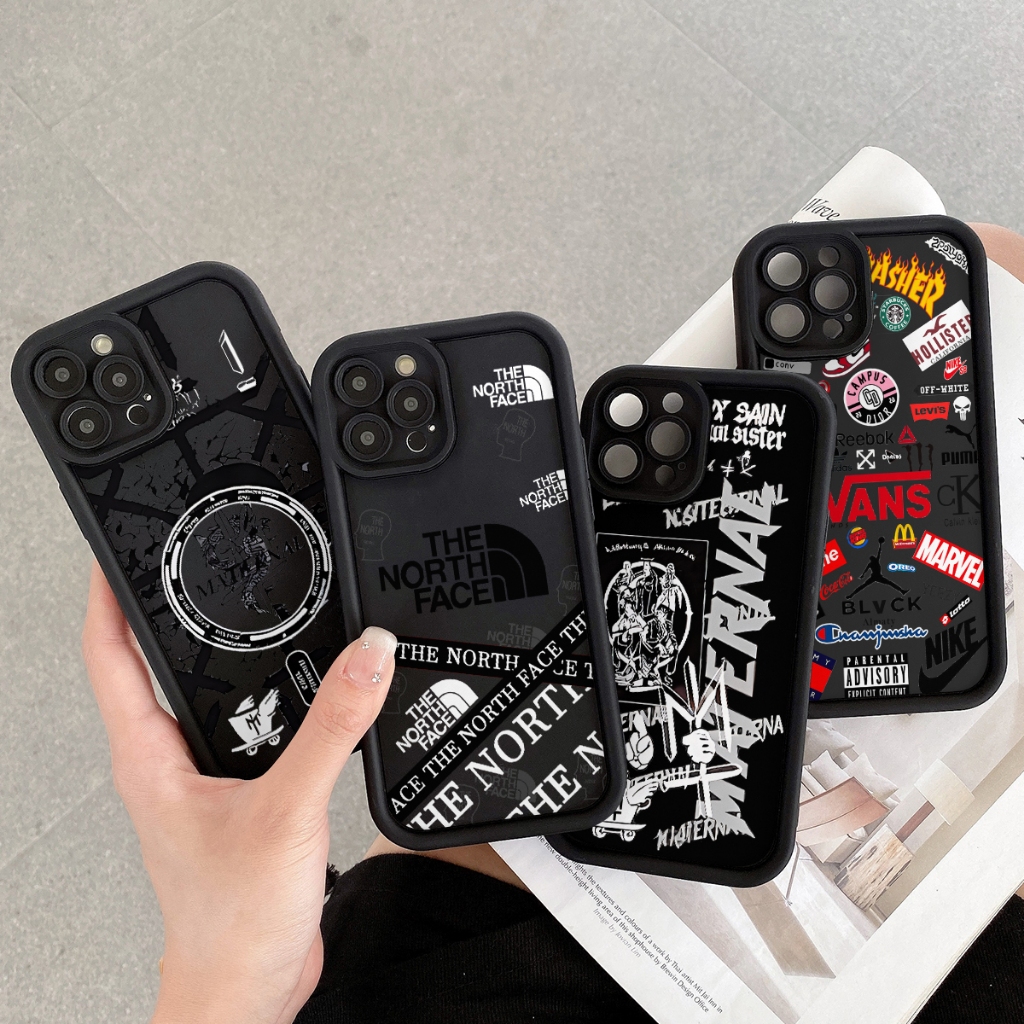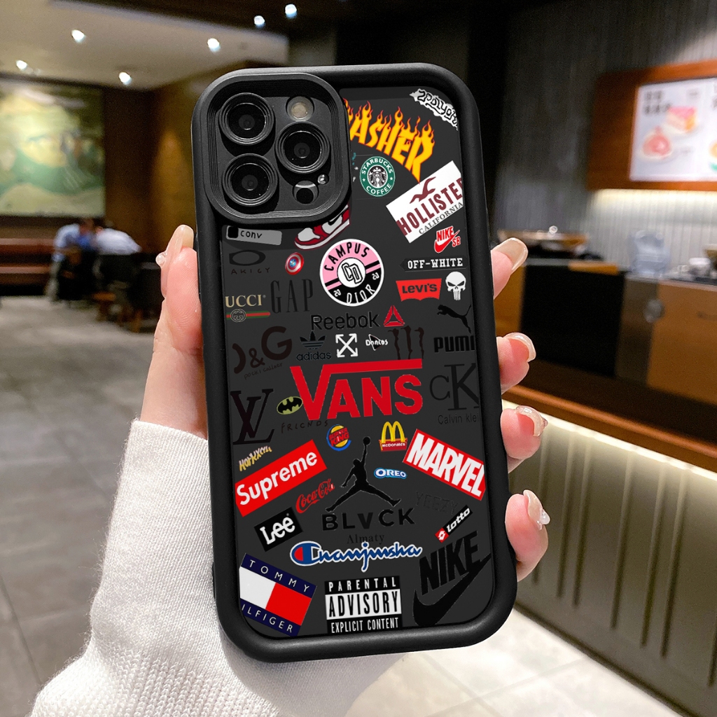 Soft Case IPhone 15 11 12 13 14 PRO MAX 6 7 6S 8 14 15 Plus XR XS MAX 6SPlus 7Plus 6Plus 8Plus 14Plus 15Plus XSMAX SE 2020 Motif Fashion Trendi Label Stiker Huruf Casing 3D TPU Phone Cover PFFH3043