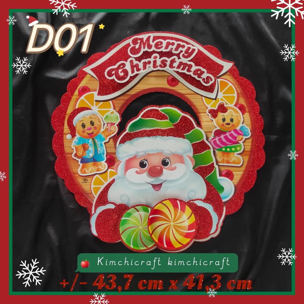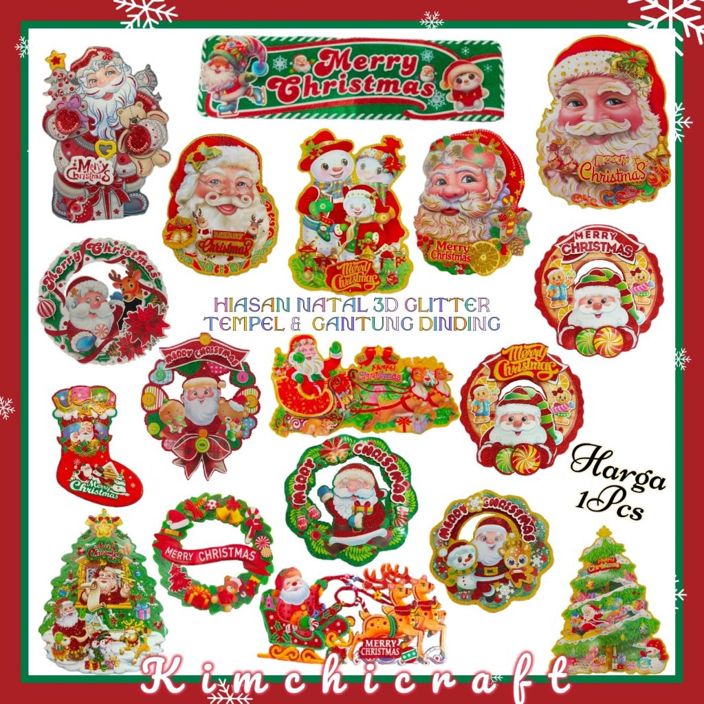 KRANS NATAL GLITER 3D BANNER TEMPELAN PINTU SANTA CLAUS TIMBUL GANTUNGAN NATAL KARTON HIASAN DINDING NATAL CHRISTMAS WRE