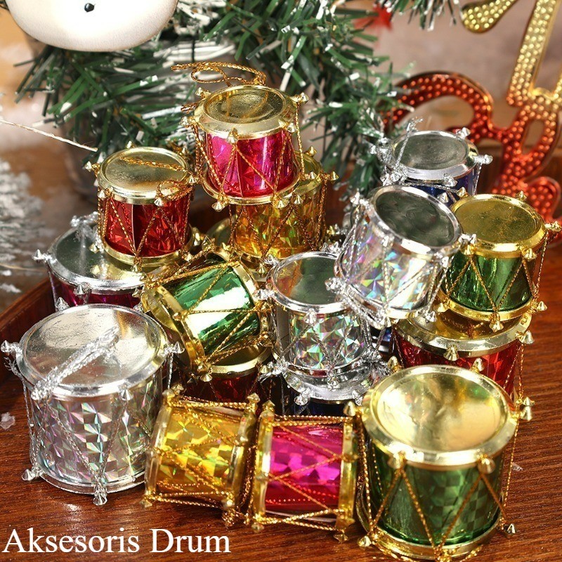 ACC14 Ornamen Gantungan Drum Hiasan Pohon Natal isi 6pcsuk3cm dan 5cm Aksesoris Merry Christmas