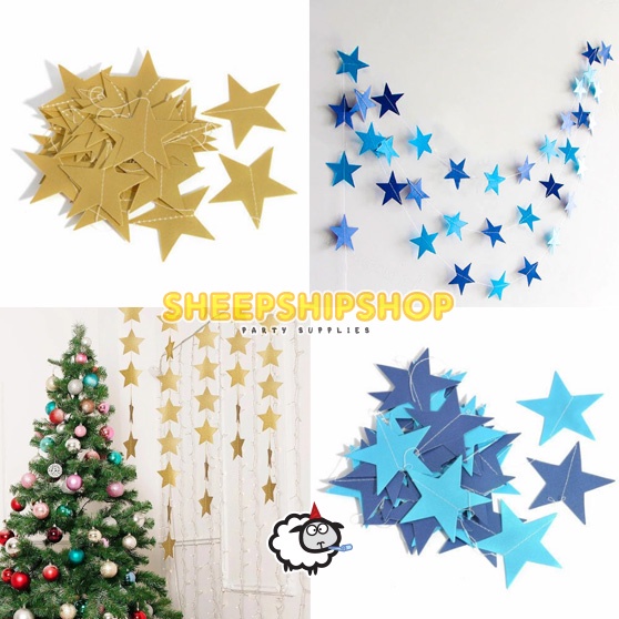 Banner Bintang Vertical Srat Mix Hiasan Kertas Gantung Bintang Tirai Dekorasi Pesta Ulang Tahun Natal Lebaran