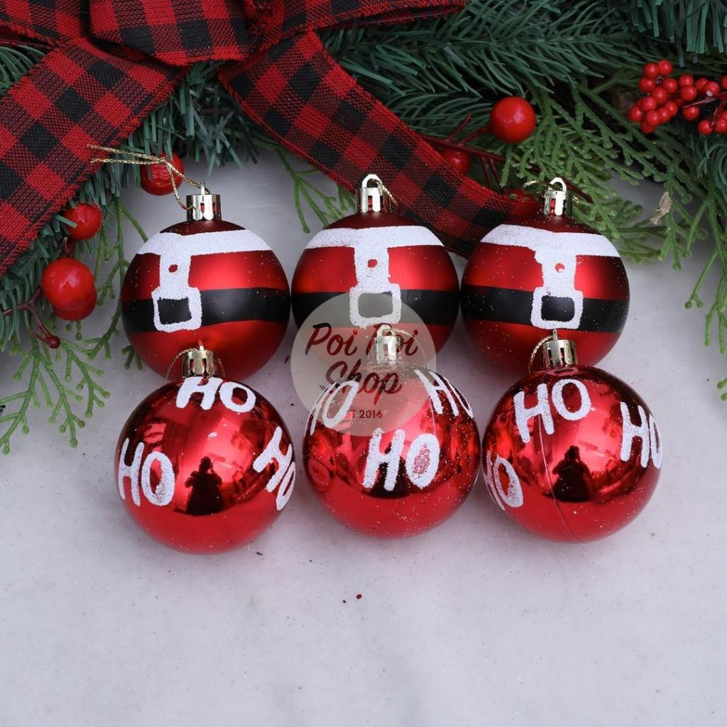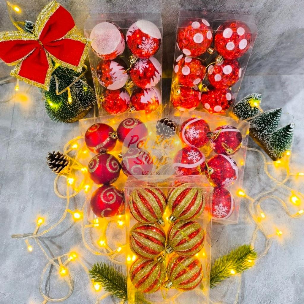 Bola Natal 6cm isi 6 Premium Motif Natal Merah Hiasan Bola Pohon Natal Christmas Ball Besar Gantungan Dekorasi Ornamen D