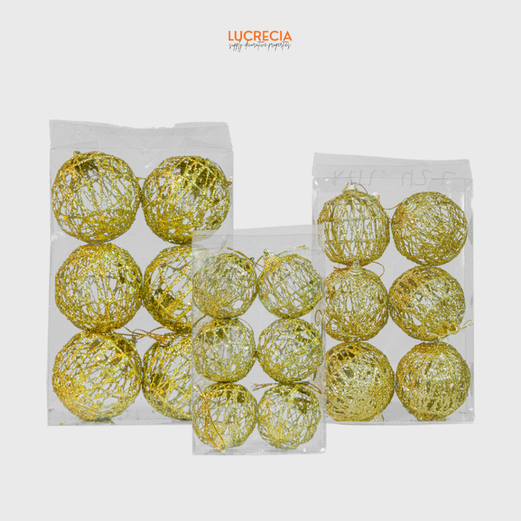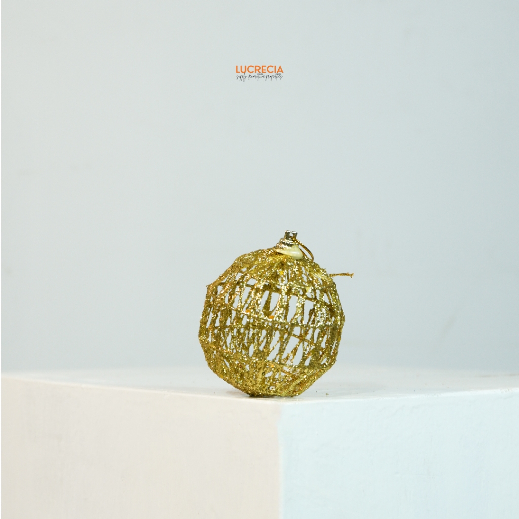 6 Pcs Gantungan Bola Kawat Pohon Natal Premium Christmas Tree Hollow Ball Hanger kuningan mengkilap Christmas Decoration