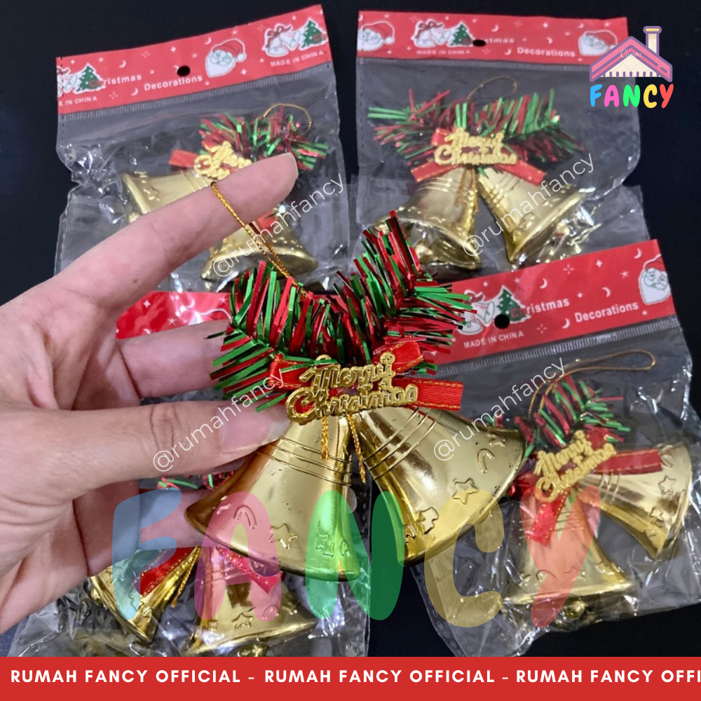 Gantungan LONCENG Half Merry Christmas Pita Rumbai Hiasan Natal PREMIUM Ornamen Pernak pernik Pohon Natal Hampers Natal