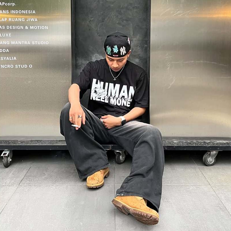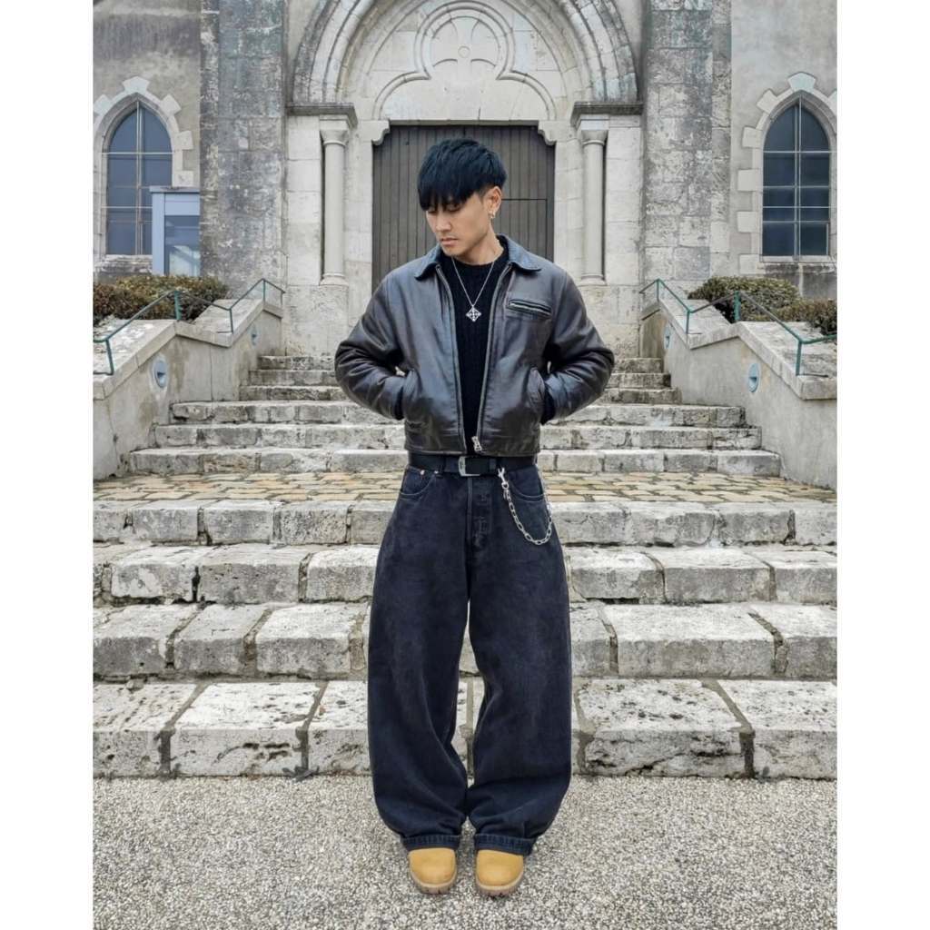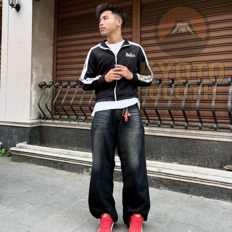 Celana Jeans Panjang Pria Skena Wide Leg Black Wishker BasicBaggy Pants Lebar Gombrong Hitam cutbray