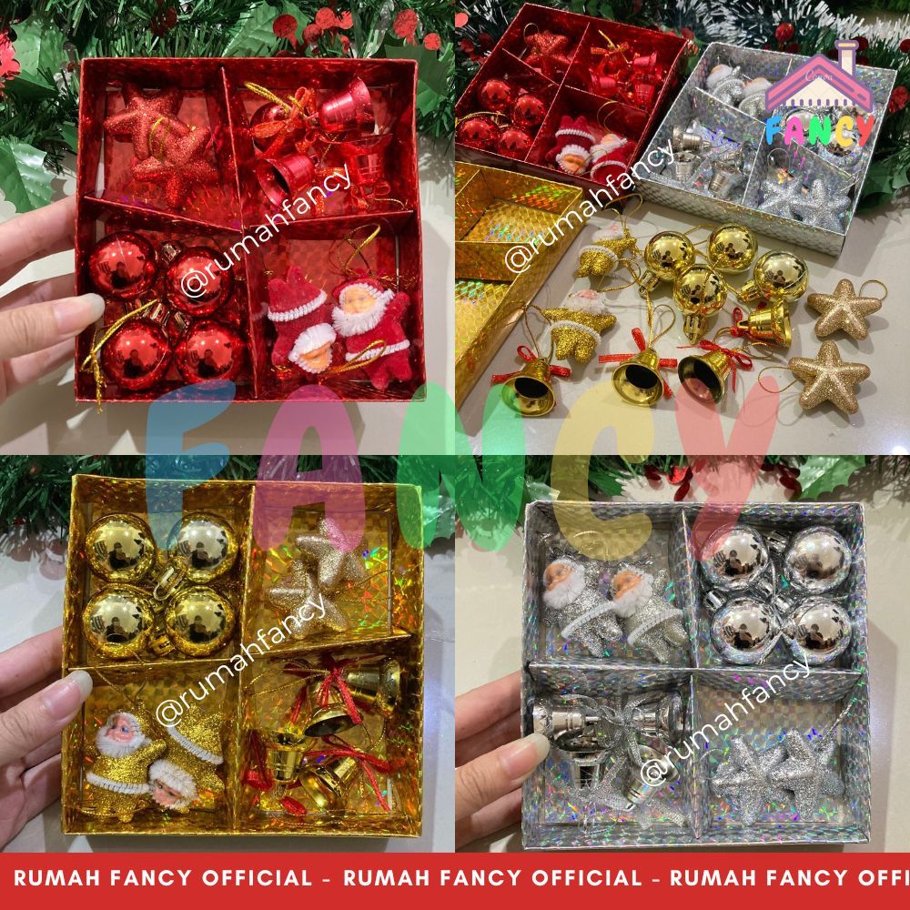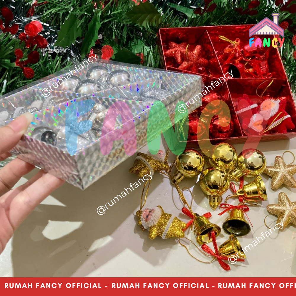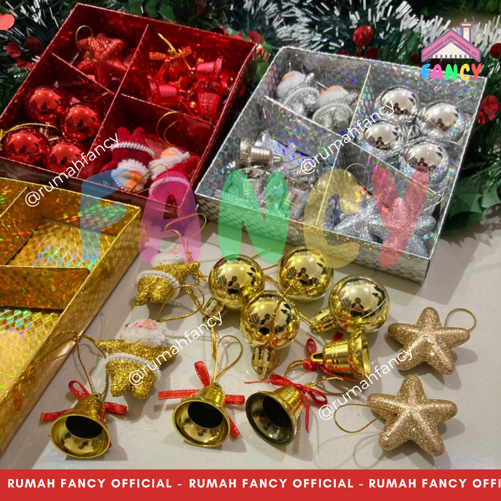 Hiasan Pohon Natal 1 Set isi 12 PCS Ornamen Santa Lonceng Bintang Glitter Gantung Natal PREMIUM 113