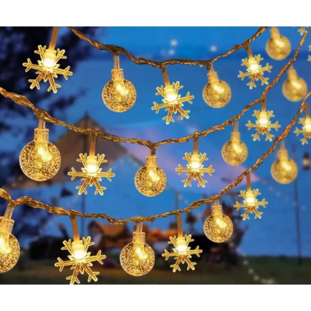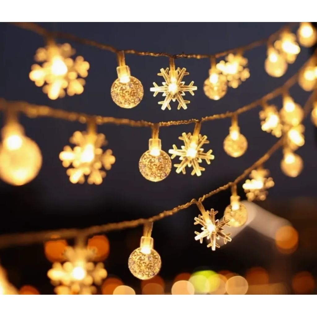 STOCK Lampu Tumblr Hias LED Lampu Renteng Natal Snowflake Bintang Bulat Pohon Lampu Tumblr Snowflake 3 Meter 20 Lampu L