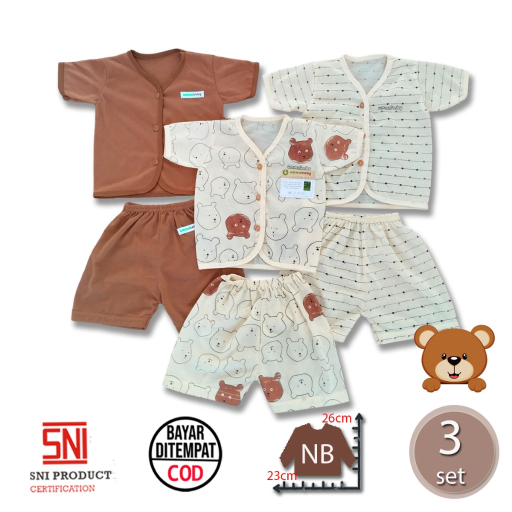 Set Baju Bayi Newborn 6 Pcs - Setelan Lengan Panjang 0-6 Bulan Unisex Coklat - Paket Hemat Kado Lahiran