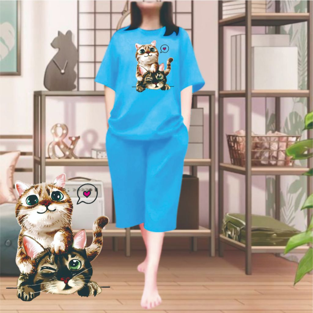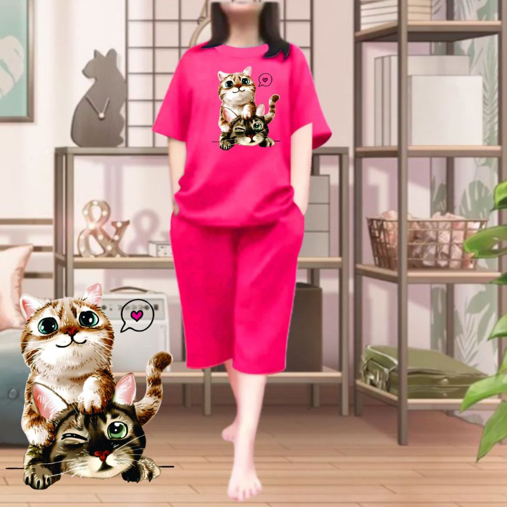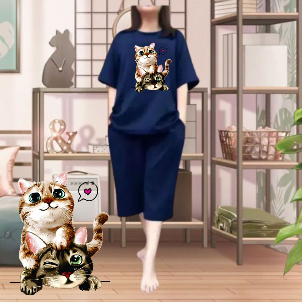 Setelan kulot 3/4 jumbo wanita D3W4SA motif kucing