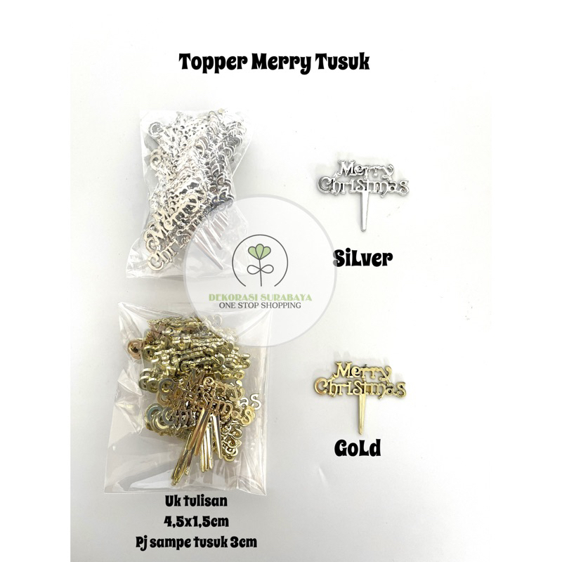 Dekorasi Natal Topper Cake Merry Christmas Tusuk isi 24pc 3x4 5cm