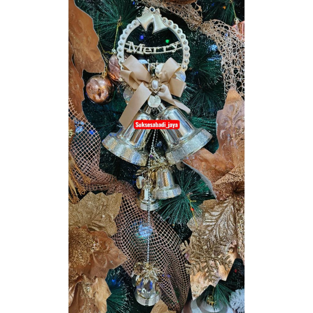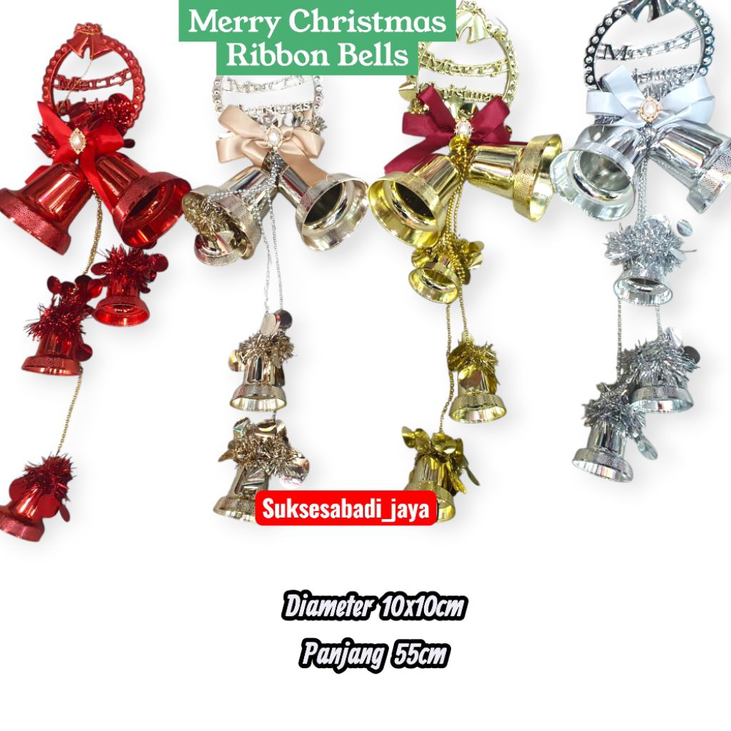 HIASAN GANTUNG POHON NATAL MERRY CHRISTMAS RIBBON BELLS HIASAN GANTUNGAN PINTU LONCENG MERRY CHRISTMAS Dekorasi Loncen