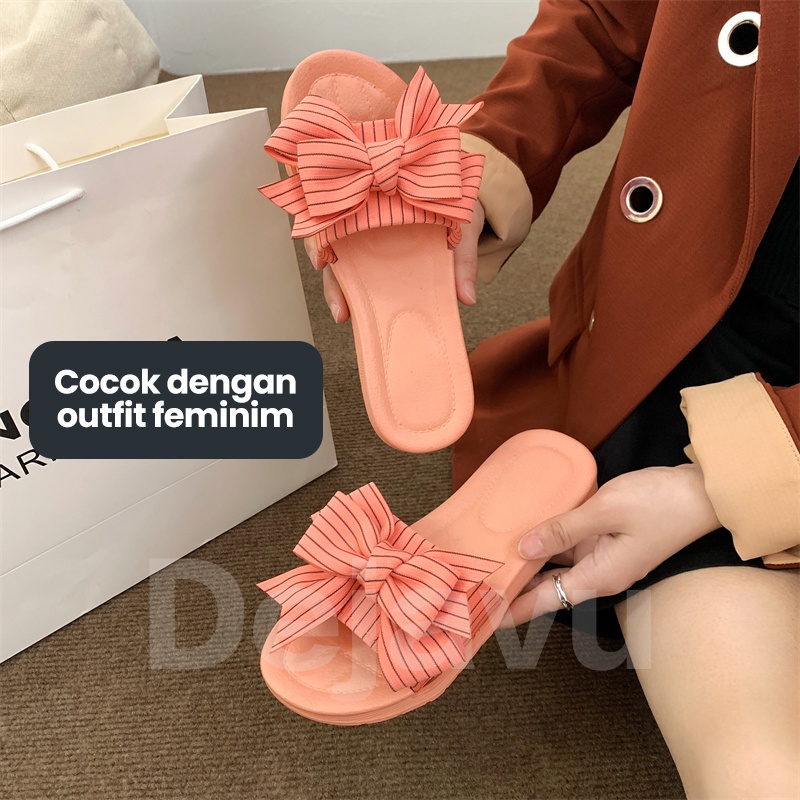 Dejavu Sendal Wanita Slop Jelly Kekinian Sendal Korea Pita Karet Rumah Flat Anti Slip HSN119