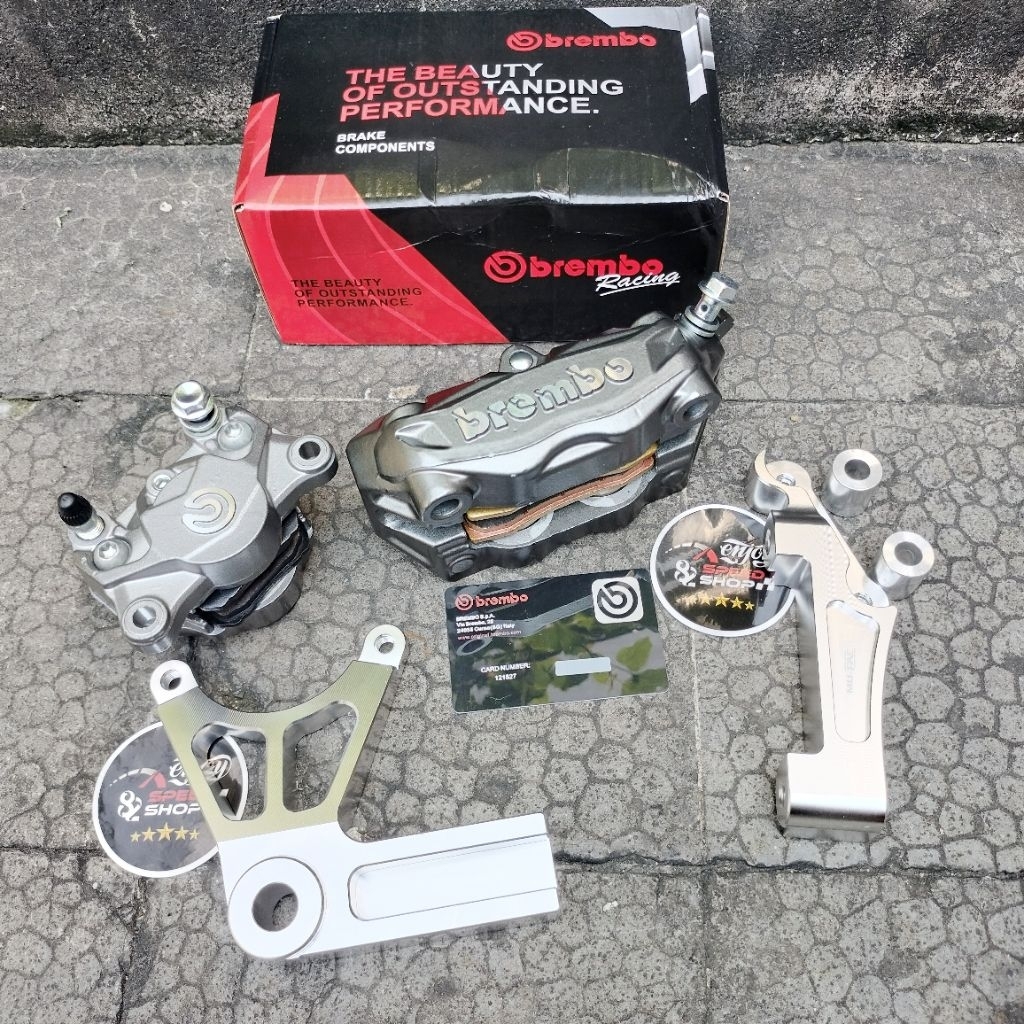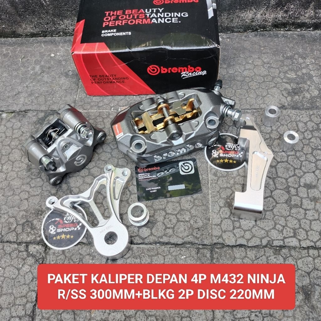 Paket Set Kaliper Depan 4P M432 + Breket Kaliper Belakang 2P Atas Big Logo Ninja R Ss Rr 300/320