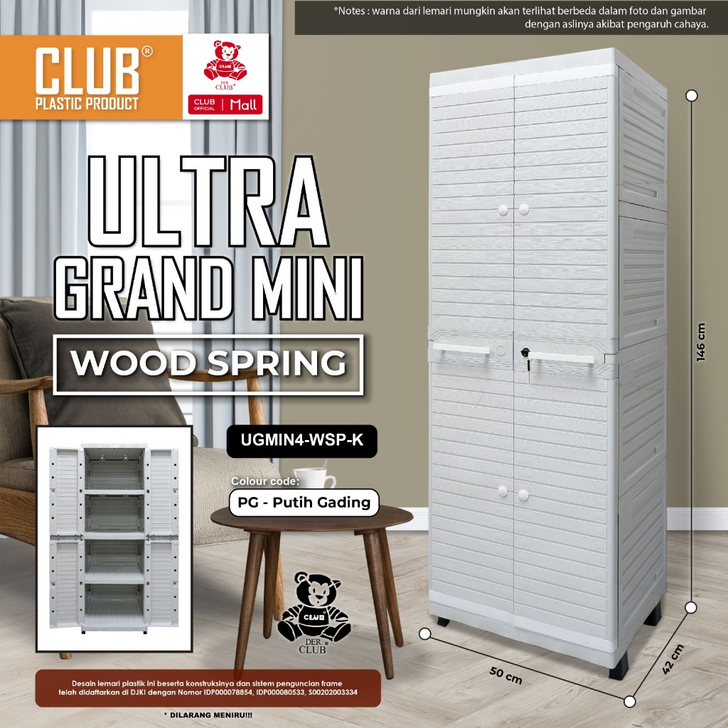 CLUB Plastik - Ultra Grand Mini Lemari Pakaian Plastik - Almari Plastik Rak Susun 4 Plastik