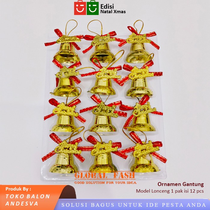Gantungan pohon natal lonceng bell merry christmas pita hiasan natal