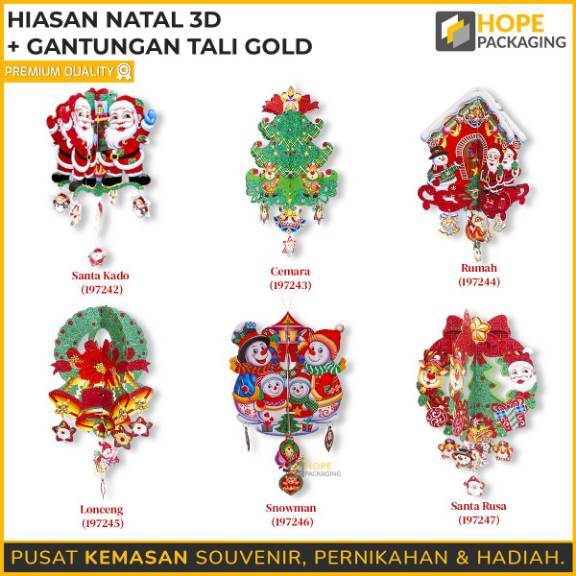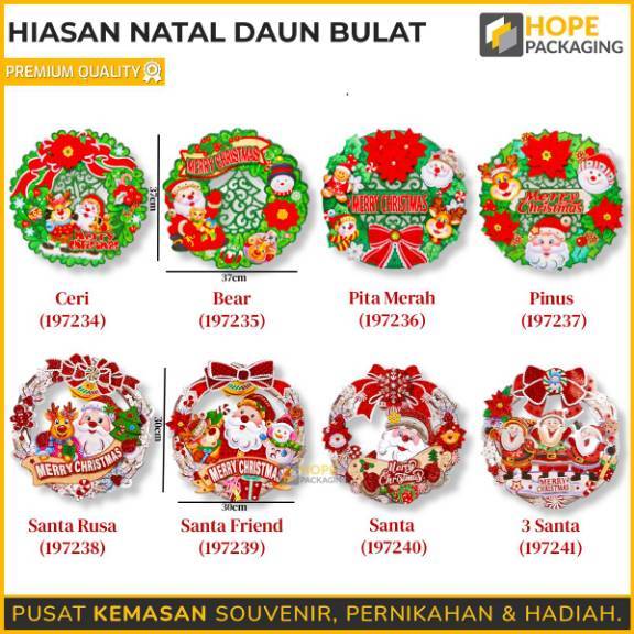 Hiasan Natal Daun Bulat Hiasan Natal 3D + Gantungan Tali kuningan mengkilap Ornament Natal Dekorasi Hiasan Pohon Natal G