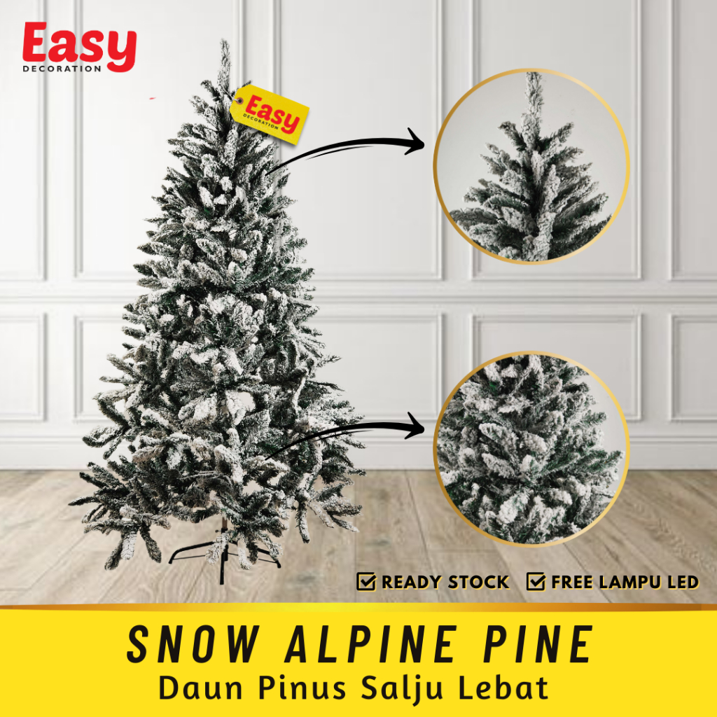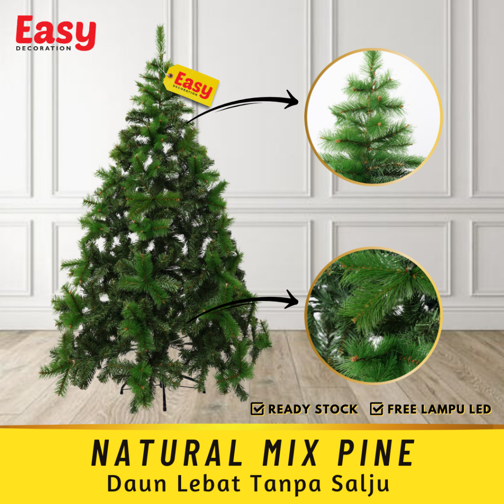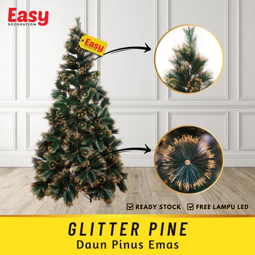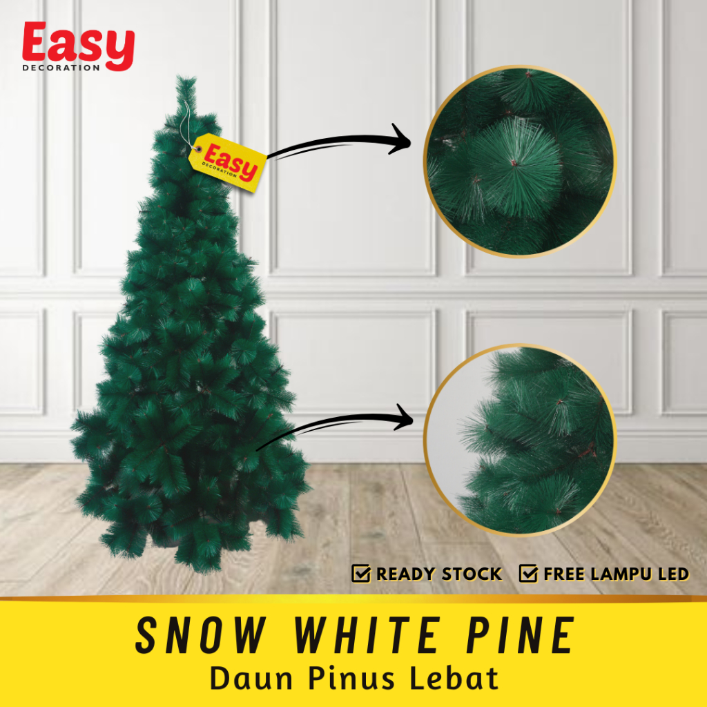JLP Easy Decoration Pohon Natal Premium 1 5 Meter 150 Cm 5 Feet Ft Christmas Tree Polos Salju kuningan mengkilap