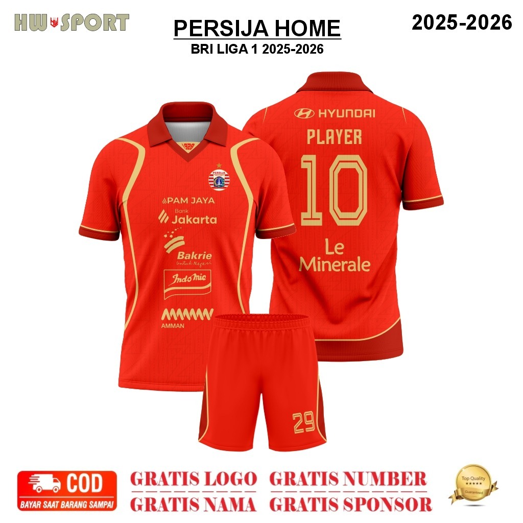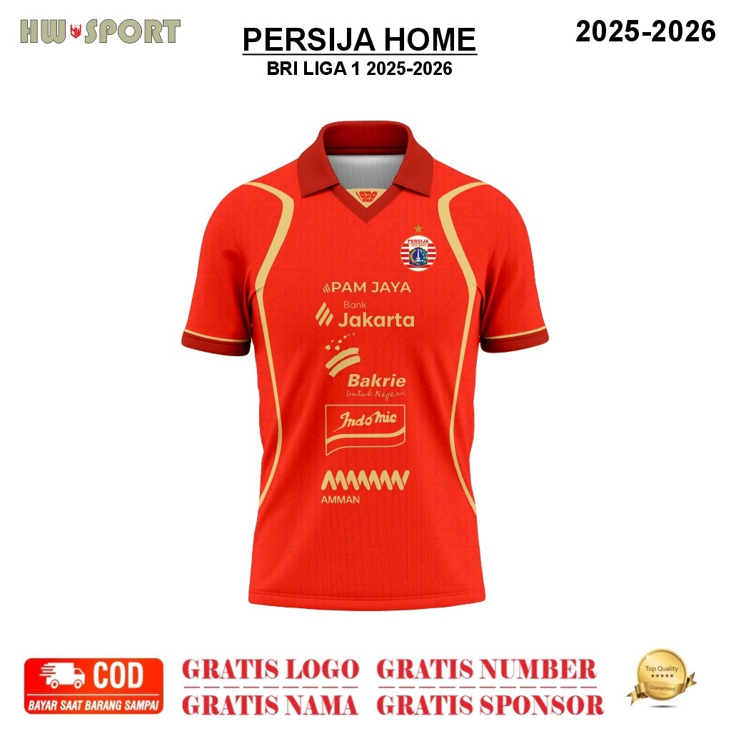 Jersey PERSIJA JAKARTA HOME - LIGA 1 Terbaru 2025-2026 Full Printing Premium Free Nama & Nomor Punggung
