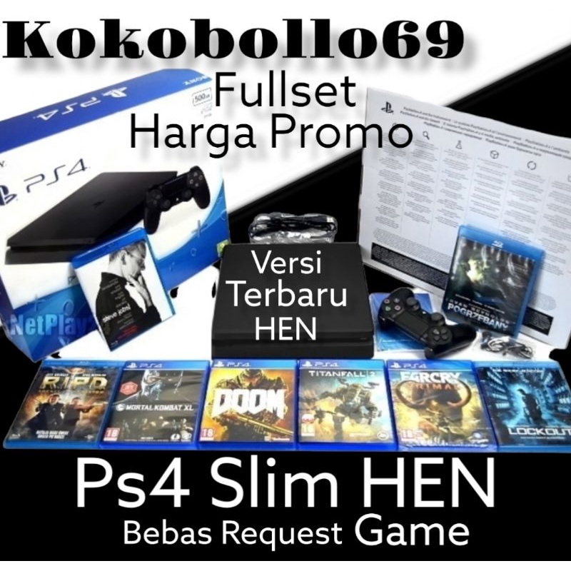 ps4 slim 22xx 1TB HEN versi terbaru 9.00/11.00 pes 2026+ 2 stik + FULL GAME