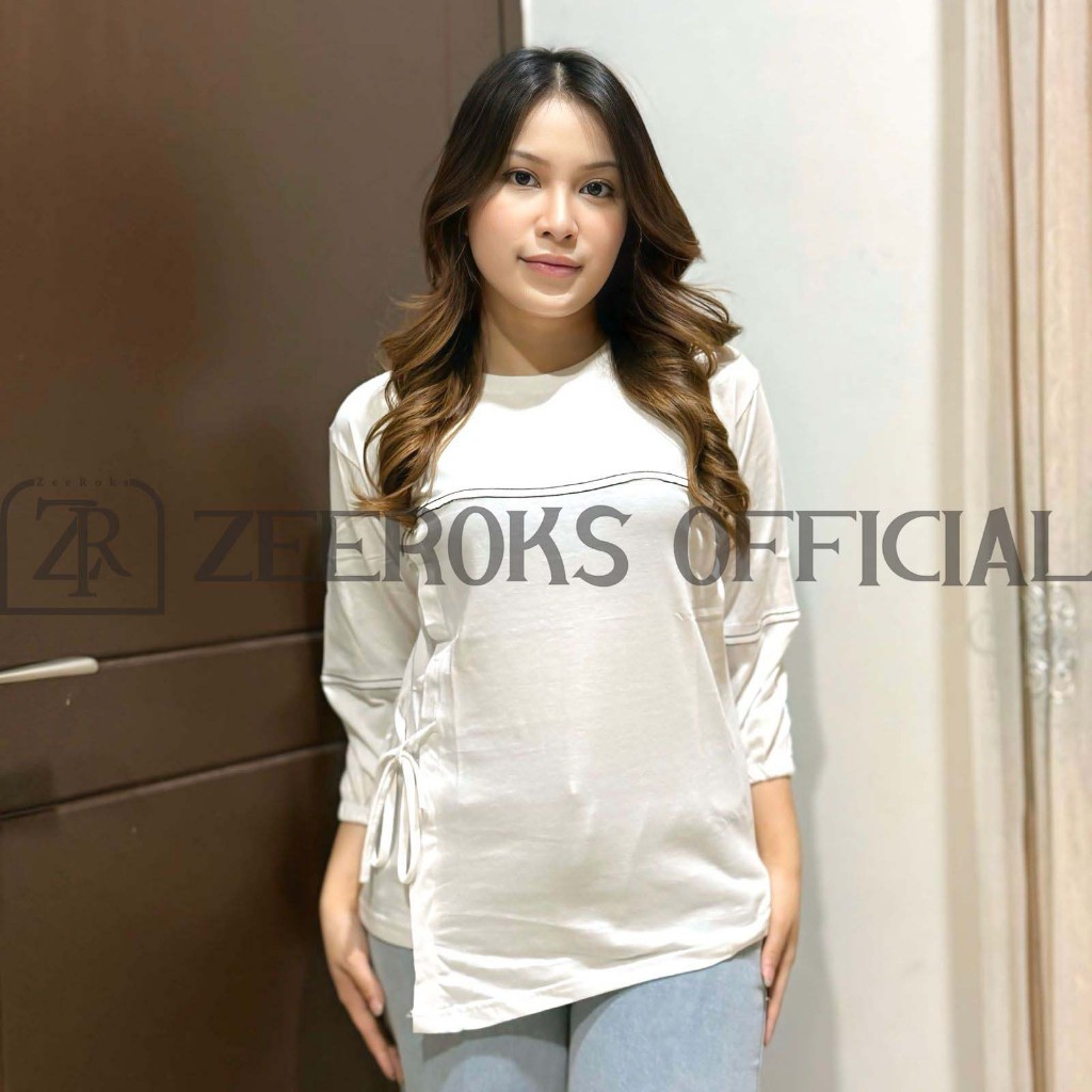 ZEEORKS Baju Atasan Wanita Lengan Panjang Oryza Variasi Tali Samping Bahan Cotton Combed Nyaman untuk Sehari-hari dan Acara Khusus