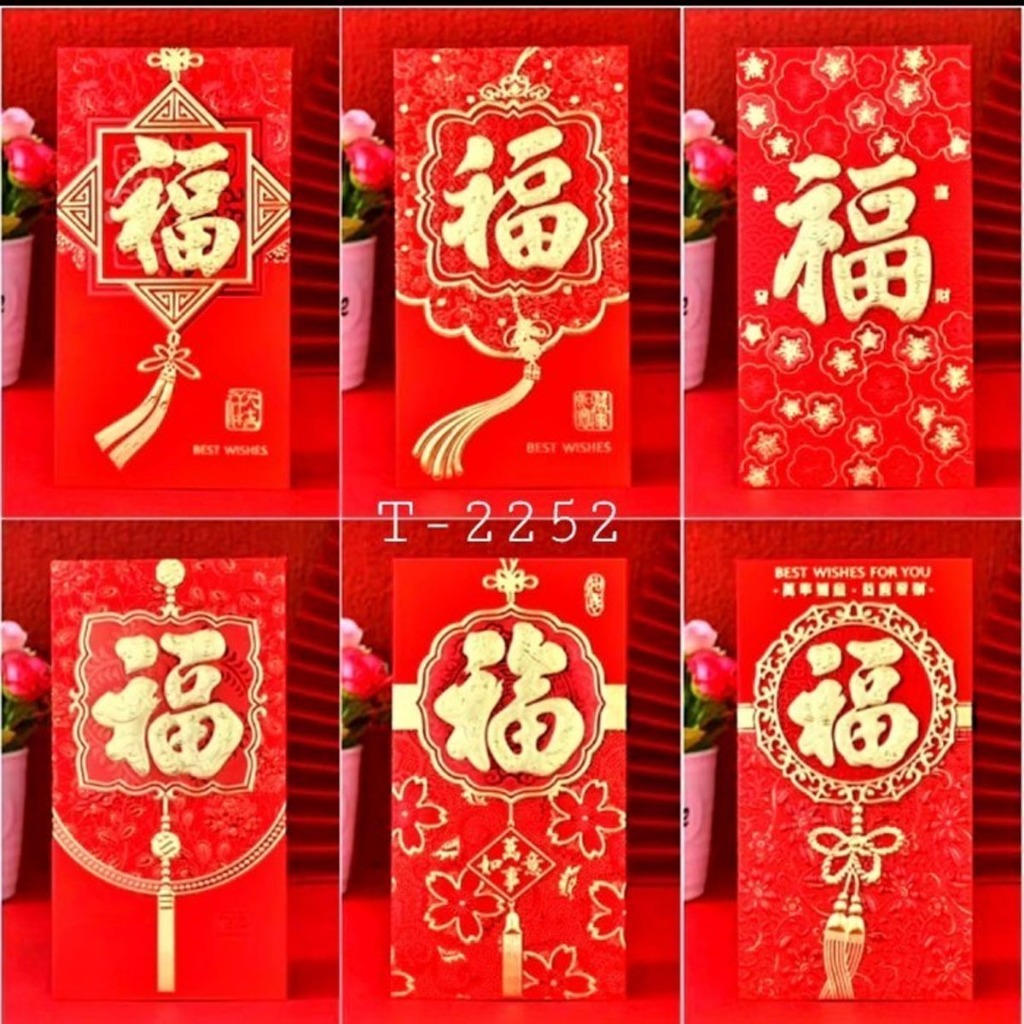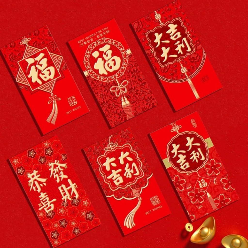 TQ Angpao Imlek Hoki Premium Bahan Tebal Embos kuningan mengkilap Panjang 1 Set Isi 6 Pcs Amplop Merah Pernikahan Ulang