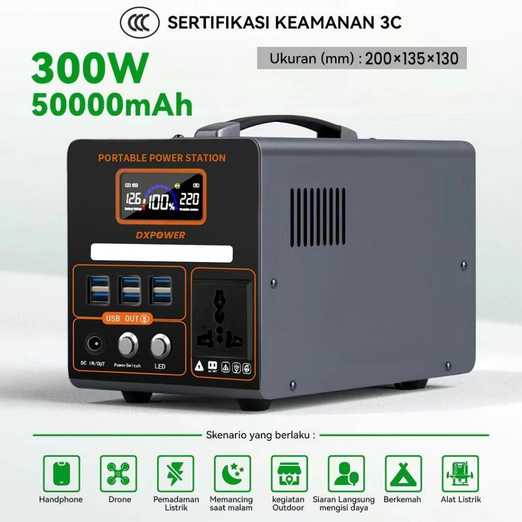 Genset Listrik Mini Power Station Camping Powerbank 220V 300W Baterai Internal 185Wh Portable Power Station Ac/Dc/Usb