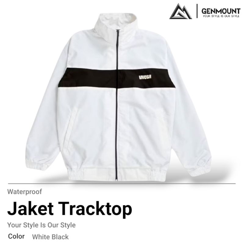 Jaket tracktop vintage pria wanita parasut white black waterproop