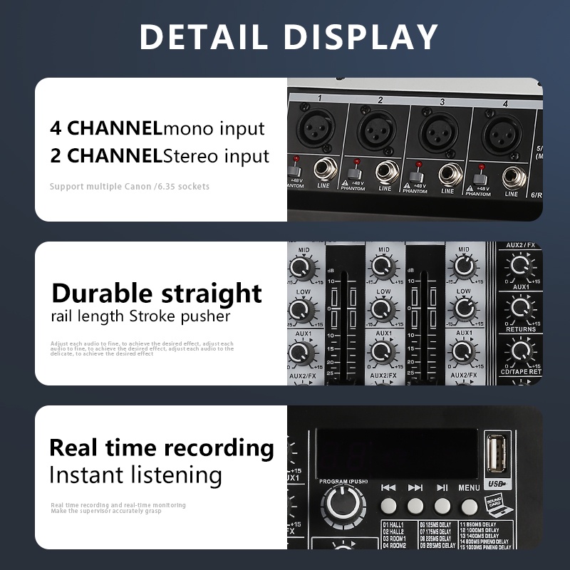 Mixer Audio KP6 mixer 6 saluran profesional, mendukung pemutaran 99 DSP MP3 USB Bluetooth, penggunaan luar ruangan KTV